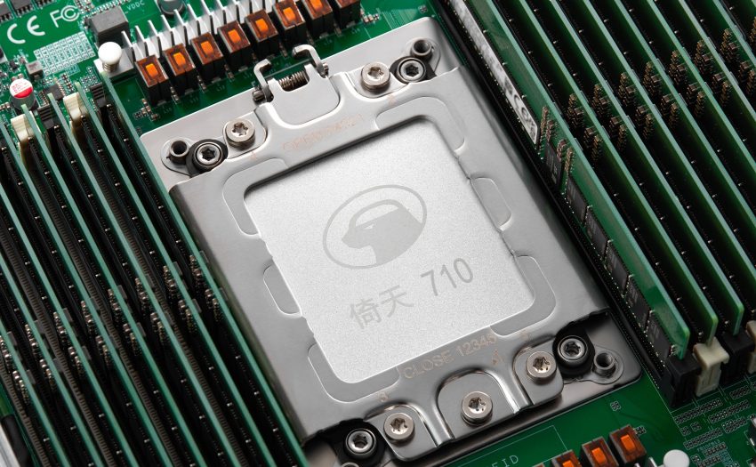 片倚天710。該芯片是業界性能最強的ARM服務器芯片,性能超過業界標桿20%,能效比提升50%以上。