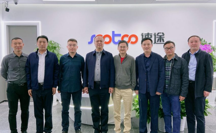 圖:商丘市人才工作服務(wù)中心張家誠(chéng)主任(圖右起第三位)、虞城縣委組織部部長(zhǎng)郝斌(圖右起第五位)一行與速途網(wǎng)絡(luò)董事長(zhǎng)兼CEO范鋒(圖右起第四位)一起合影