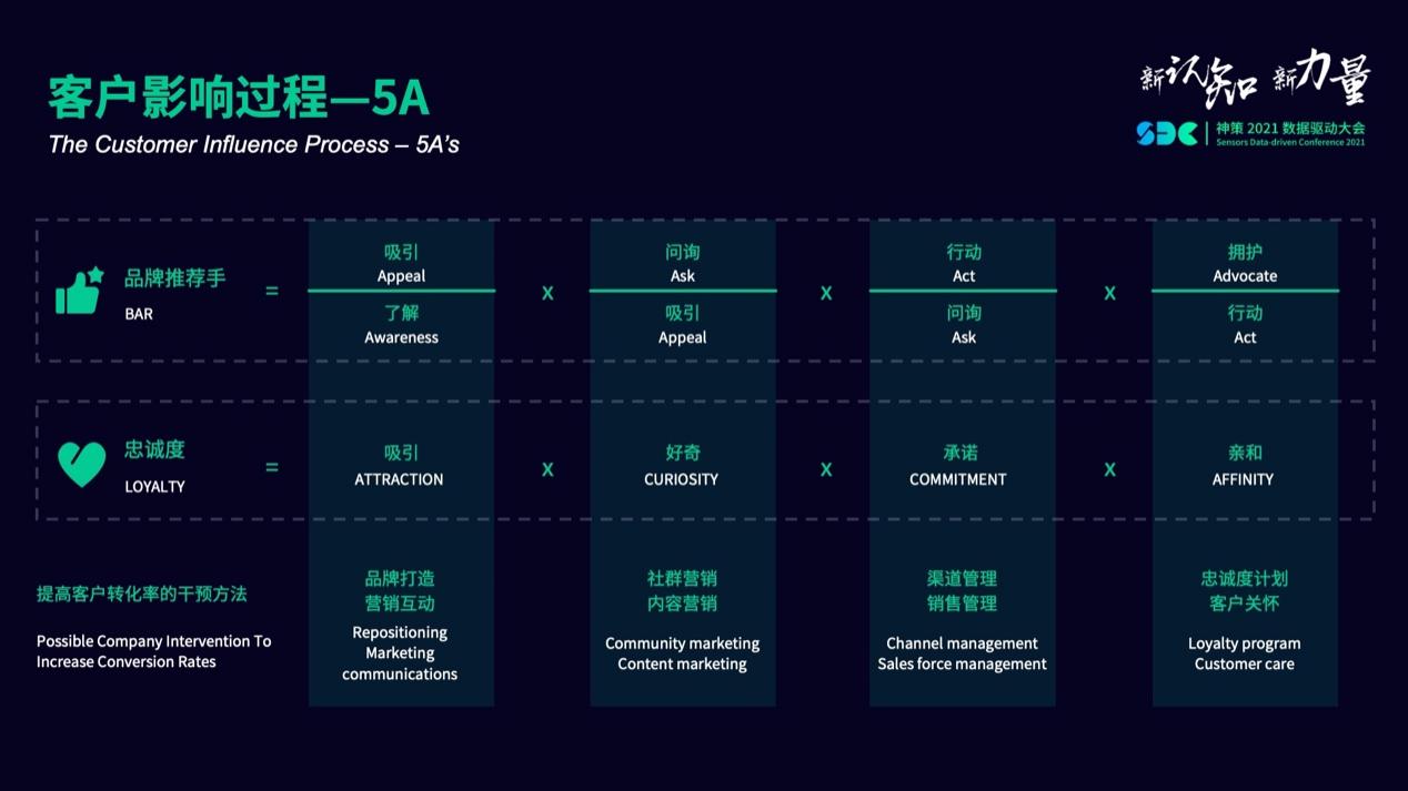 同時(shí),他詳解了描繪用戶旅程創(chuàng)建的 5A 模型,并指出 5A 模型是通過數(shù)字營(yíng)銷影響客戶的最佳方式。