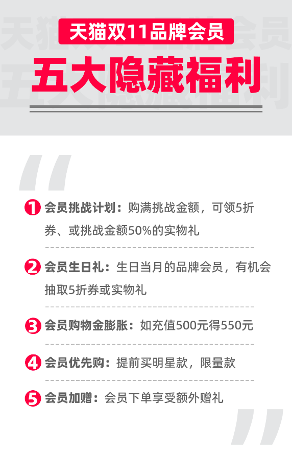 注意的是,上述品牌會員的所有折扣優惠或實物贈品,均是可以在享受完天貓雙11所有平臺折扣基礎上,再疊加的會員專屬福利,即相當于“折上折”。