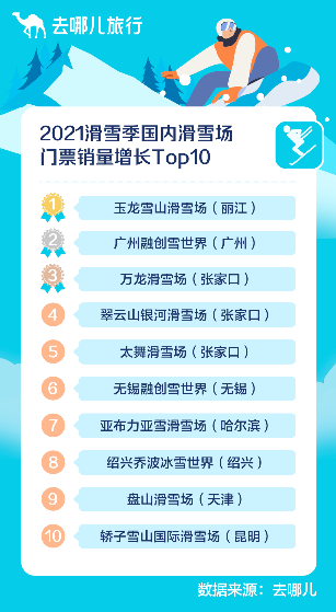 冬奧會越來越近,國內冰雪運動的熱度也不斷提升,去哪兒數據顯示,國內滑雪的熱度已經超過2019年同期3倍以上。更重要的是,隨著近年國內冰雪運動的推廣,冰雪運動已經不止于北方,推進冰雪運動“南展西擴東進”的效果顯著,“帶動3億人參與冰雪運動”逐步落實。四川、湖北和云南等地多家雪場門票銷量已經超過疫情前。截至目前,去哪兒平臺門票增長最快的雪上樂園(雪場)Top10中,半數在南方,其中麗江玉龍雪山滑雪場門票銷量已經超過2019年同期四成。