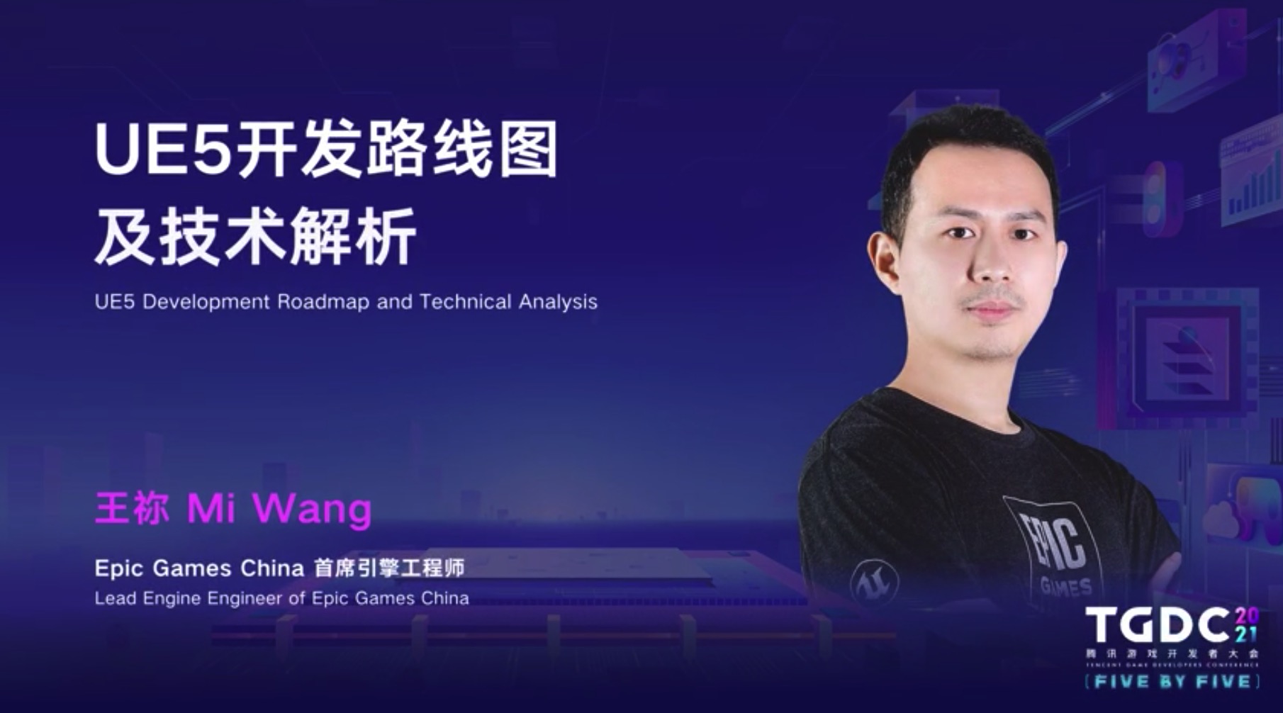 技術專場中,來自Epic Games China的首席引擎工程師王禰較為全面地介紹了虛幻引擎5的最新功能,并指出UE5開發的目標在于通過提高渲染品質拉高虛擬世界構建和表現的上限,提高開發和迭代的效率,并通過提供更多更豐富易用的工具,降低使用門檻等。
