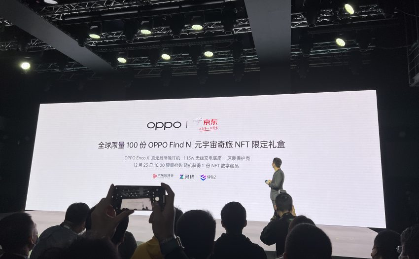 速途元宇宙研究院12月15日訊 今日,在OPPO Find N新品發布會上,OPPO 聯合京東推出元宇宙奇旅NFT限定禮盒。包含OPPO Find N手機外,還附贈OPPO Enco X真無線降噪耳機、15W無線充電底座、原裝保護殼、以及一份定制版NFT數字藏品。