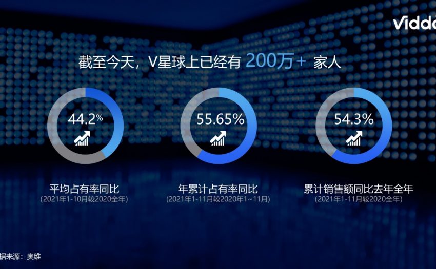 Vidda首席品牌官朱書琴通過(guò)最新的動(dòng)作捕捉技術(shù)現(xiàn)身元宇宙發(fā)布會(huì),她透露目前Vidda電視的銷量已經(jīng)超過(guò)200萬(wàn),8-11月銷量占有率同比增長(zhǎng)127.2%,銷售額占比同比增長(zhǎng)118.4%;1-11月年累計(jì)占有率同比提升55.65%。雙11期間,周期零售額同比增長(zhǎng)157%,零售量同比增長(zhǎng)137.1%,而在雙11后的一個(gè)周,市占率突破至7.16%,同比提升比例達(dá)88%,成為今年彩電市場(chǎng)增長(zhǎng)最快的品牌之一。根據(jù)奧維最新數(shù)據(jù)顯示,Vidda在今年8-11月銷量占有率同比增長(zhǎng)127.2%,銷售額占有率同比增長(zhǎng)118.4%。