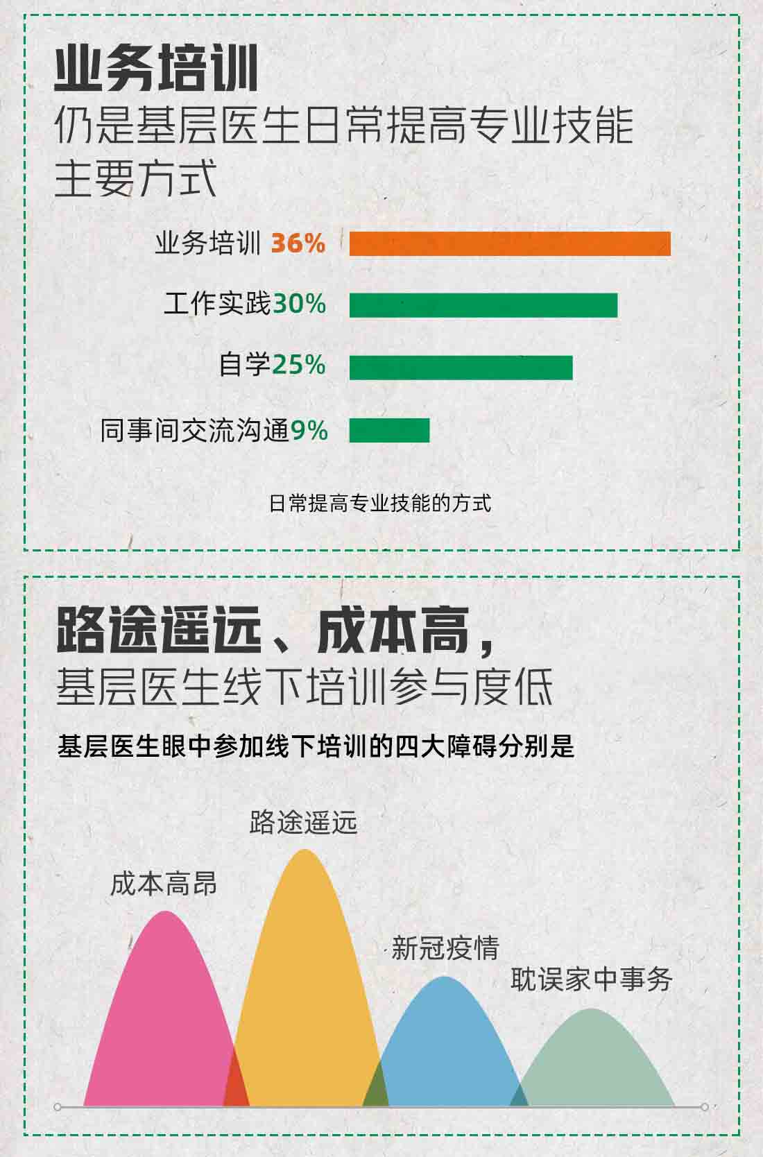 傳統(tǒng)的業(yè)務(wù)培訓(xùn)多在線下,這種培訓(xùn)形式對于基層醫(yī)生,尤其是偏遠地區(qū)基層醫(yī)生來說并非易事。調(diào)研中,基層醫(yī)生認(rèn)為參加線下培訓(xùn)的四大障礙依次是“路途遙遠”、“成本高昂”、“新冠疫情”和“耽誤家中事務(wù)”。