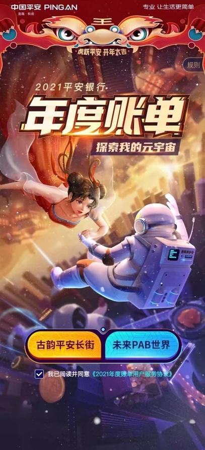 速途元宇宙研究院12月21日訊 近日,平安銀行上線這份2021年年度賬單,本次年度賬單運用了“元宇宙”的概念,刷新了傳統銀行年度賬單的玩法。