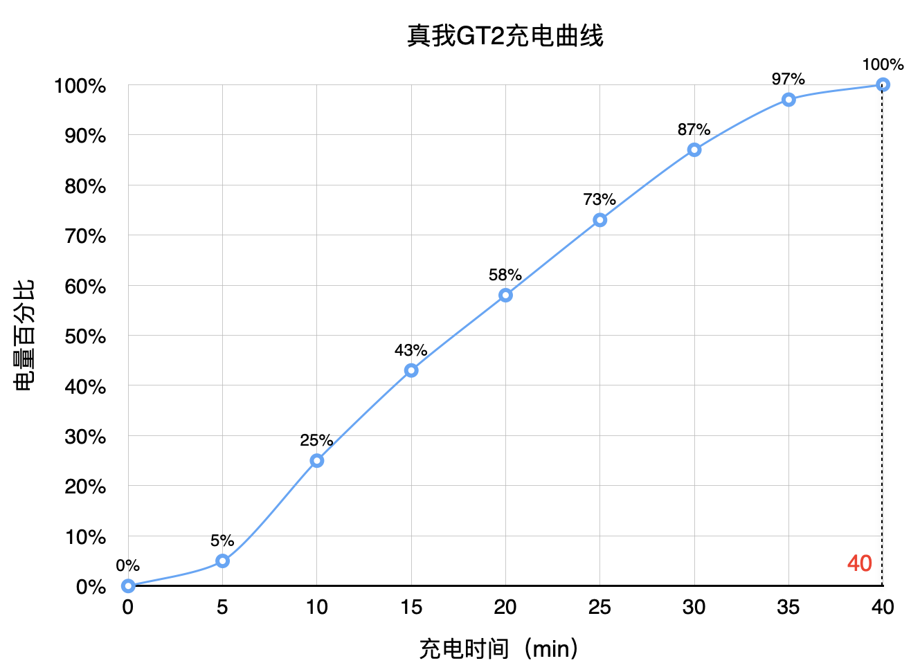 在充電測試環節,使用原裝充電器為手機進行充電, 0-100%充電僅需40分鐘。值得注意的是,速途網測試條件是將手機電量用到自動關機,再為手機進行充電,手機在充電前5分鐘仍處于關機狀態,此時快充并未被激活,需要等待手機充入一定電量方可激活。