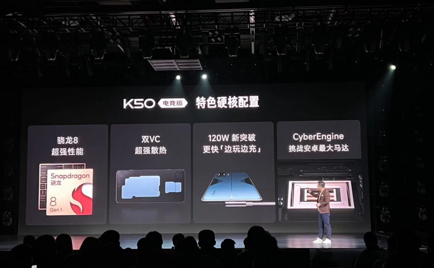 K50 電競版搭載全新一代驍龍8 旗艦處理器,突破性采用熱源分離布局和雙區溫控,結合雙 VC、超大面積石墨等一系列豪華散熱材料,造就最冷靜驍龍8 旗艦。還延續了磁動力肩鍵設計,并全新升級 JBL 寬頻四單元揚聲器、最新一代CyberEngine 超寬頻 X 軸馬達 1016、更大電量的 120W 神仙秒充等一系列行業領先配置,是一款全線拉滿的冷血旗艦。