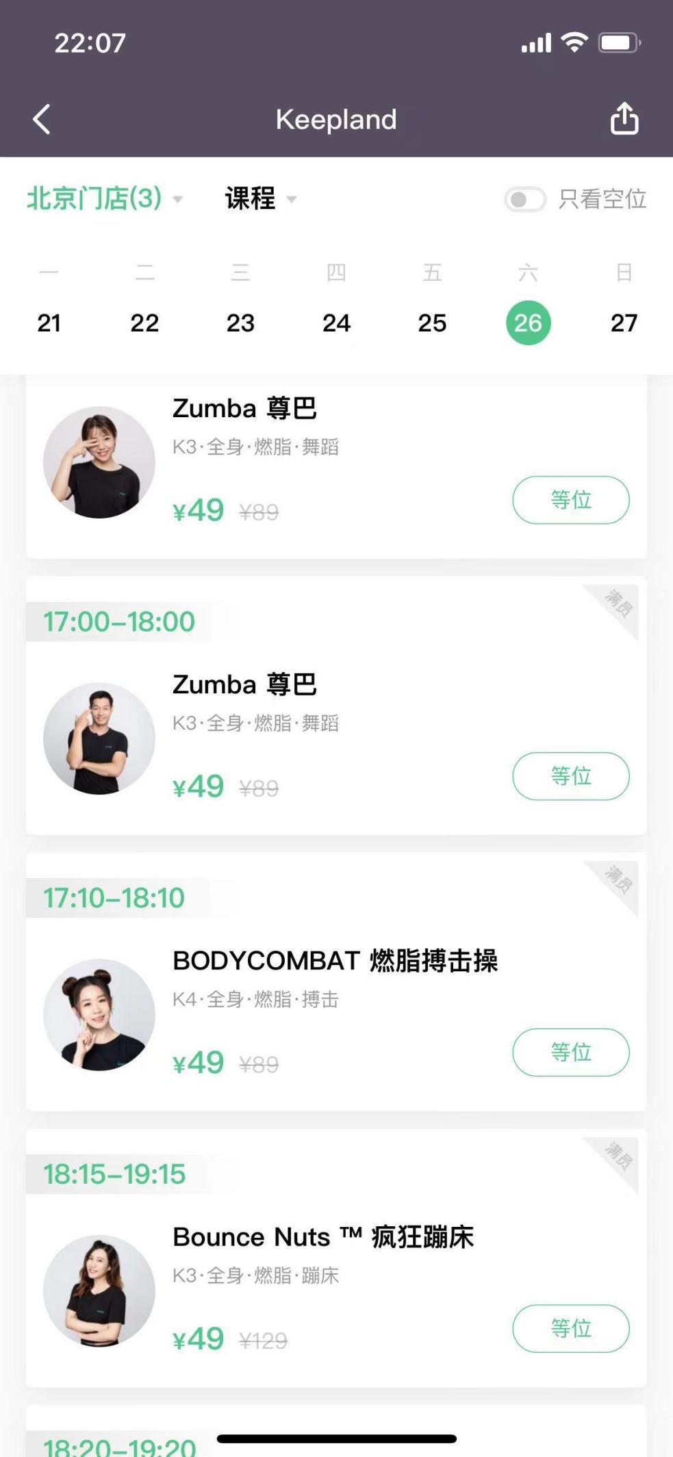 速途網2月19日消息(報道:李楠)昨日,運動科技公司Keep宣布推出“優選健身館計劃”,自2月21日起,Keep所有線下健身場館將統一升級為“Keep優選健身館”,其中Keepland 9家自營門店、10家合作門店全部課程均降為每節49元。昨晚10點,是該計劃發布后的首次用戶預約時間,速途網注意到,剛開始1分鐘,黃金時段的如燃動跳繩、尊巴等熱門課程就被約滿。5分鐘內,光周日一天就有30節課全部售罄。有Keep內部人員透露:“調價首日,用戶約課量上漲近8成。”