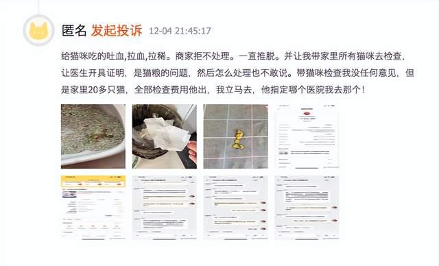 值得注意的是,這不是信元發育寶第一次出現負面消息。早在2021年12月4日就曾有用戶在黑貓平臺對信元發育寶的產品和售后進行投訴,當時這位消費者描述也是貓咪吃了貓糧之后出現不良癥狀,且他附上的圖片顯示,他購買的產品也是信元發育寶的“饕餮系列”貓糧。