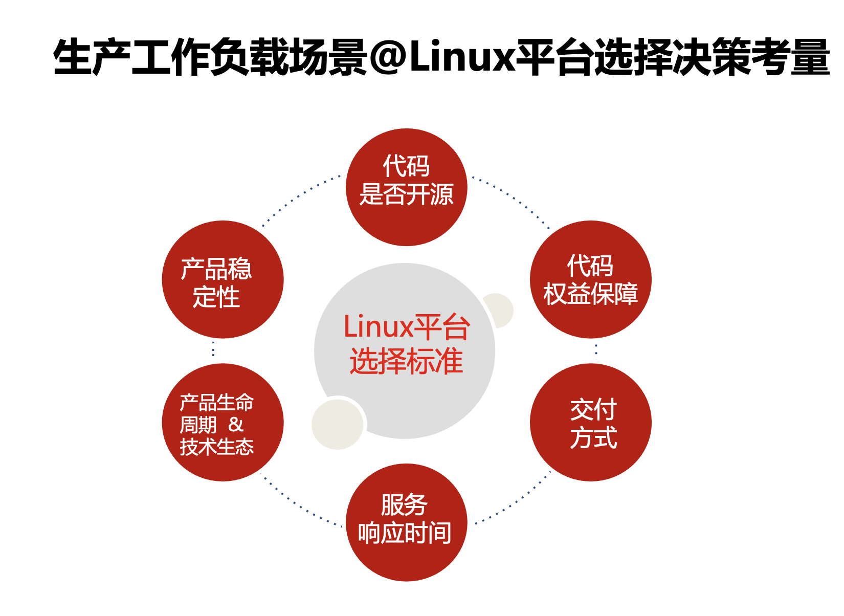 針對后CentOS 時代企業如何選擇正確的Linux開放平臺,曹衡康認為企業應當從六個維度進行決策考量。