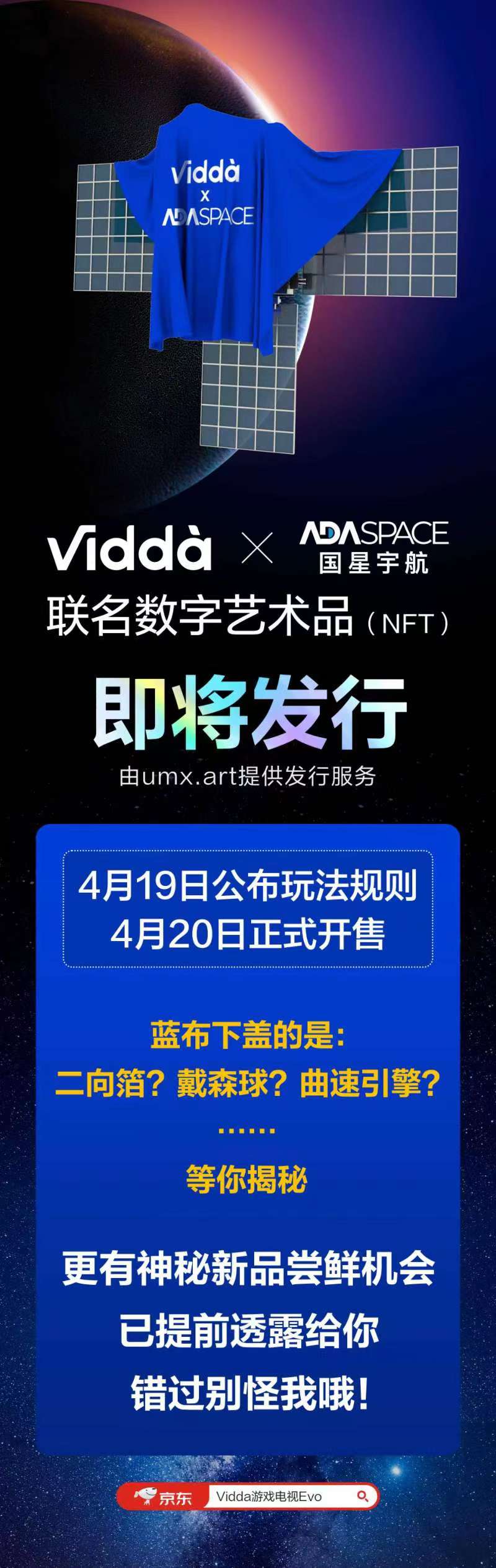速途元宇宙研究院4月15日訊 今日,海信旗下年輕潮牌Vidda今天通過官方微博宣布即將推出聯(lián)名NFT(數(shù)字藝術(shù)品)。根據(jù)海報信息,該NFT將于19日公布詳細的玩法規(guī)則,20日正式發(fā)售。同時,海報中透露的神秘新品也被網(wǎng)友猜測為傳言中的Vidda智能激光投影新品。