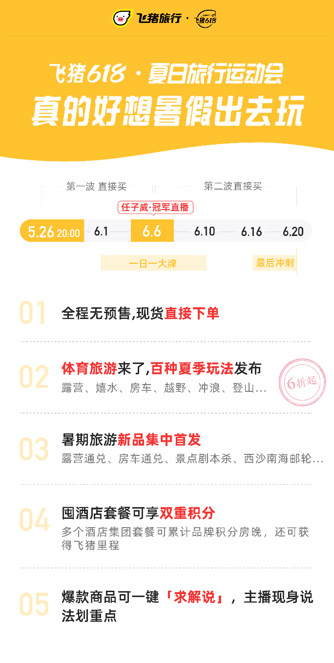 速途網5月26日消息(報道:李楠)今日,飛豬啟動618大促,發力暑期旅游市場。