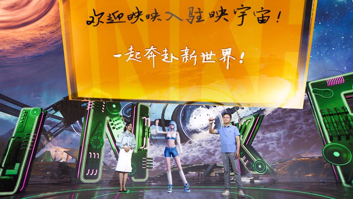 發布會現場,虛擬人“映映”與映客互娛集團高級副總裁夏曉暉舉行了正式簽約儀式,共同“寫下”在映宇宙的盟約——一起奔赴新世界。