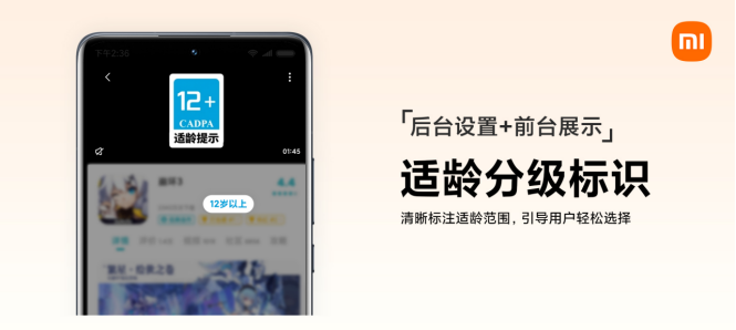 2020年,《網(wǎng)絡(luò)游戲適齡提示》在中國游戲產(chǎn)業(yè)年會(huì)上正式發(fā)布。依據(jù)《網(wǎng)絡(luò)游戲適齡提示》的建議,小米游戲也與開發(fā)者們共同對(duì)平臺(tái)在架游戲進(jìn)行了適齡分級(jí)。截至2022年2月底,小米游戲累計(jì)對(duì)上萬款在架游戲完成適齡合規(guī)篩查,并全量完成適齡合規(guī)提示展示,目前已經(jīng)沉淀了完善的流程——以后臺(tái)設(shè)置加前臺(tái)展示為原則,將適齡的范圍劃分為8+、12+、16+三個(gè)階段,幫助開發(fā)者進(jìn)行合理的游戲適齡范圍展示。