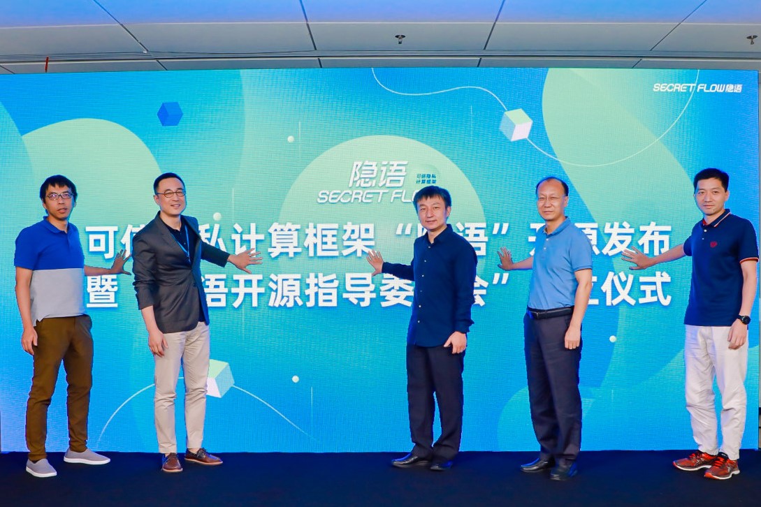 發布會上,螞蟻集團副總裁兼首席技術安全官韋韜和中國信通院云大所所長何寶宏、浙江大學網絡空間安全學院院長任奎、上海交通大學教授郁昱、LVS開源項目創始人章文嵩共同啟動,成立了“隱語開源指導委員會”。