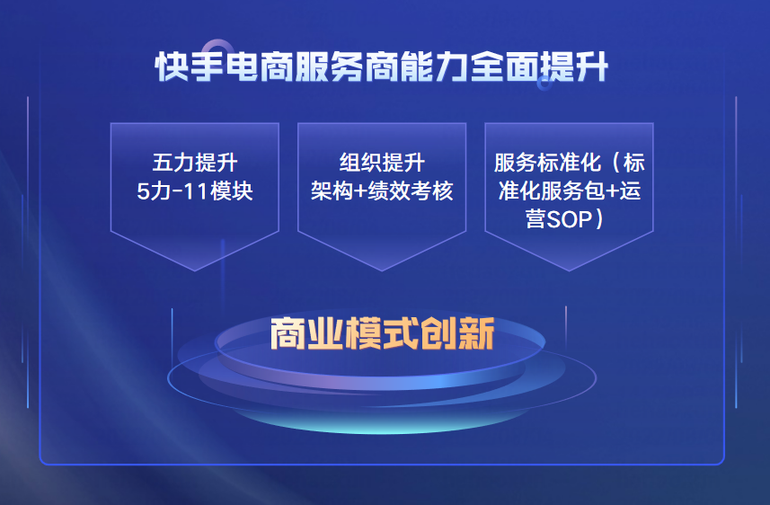這些高速增長的數據背后是快手電商服務商服務能力的全面升級,不僅從去年的“五力模型”升級到“11模塊”,在組織能力和服務的標準化方面,快手電商均對服務商提出了新的要求。