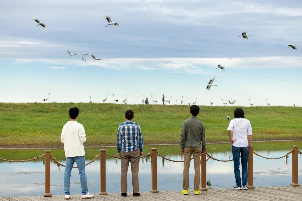 直播現場,三位嘉賓實地感受了“鶴鳴于九皋,聲聞于野”的壯觀景象??吹降ろ旡Q成群結隊優雅飛過,許知遠連連驚嘆“那種真實、很性感的鶴,迎面向你涌過來時,會讓你心跳”;張朝陽用空氣動力學原理解釋它們為何能保持穩定飛行;李栓科則科普了丹頂鶴的鳴管有一米多長,尖叫的時候能穿透三四公里。