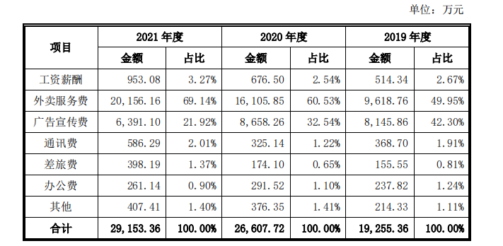 此外,老鄉(xiāng)雞為成功出圈在營銷上投入不菲,較為著名的#手撕降薪聯(lián)名信#、#200元的“土味兒”發(fā)布會(huì)#,及#一只雞的微博#雖為其打開了知名度,也使其2020年、2021年的廣告宣傳費(fèi)用達(dá)到了8658.2萬及6391.1萬,占總營收的3%。
