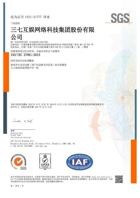 而在網(wǎng)絡(luò)安全層面,近期,三七互娛ISO/IEC 27001信息安全管理體系第二階段外部審核工作順利通過(guò)。ISO/IEC 27001是世界上應(yīng)用最廣泛與典型的信息安全管理標(biāo)準(zhǔn),二審?fù)ㄟ^(guò),證明三七互娛在信息安全保障方面的實(shí)力,表明了三七互娛有能力為用戶(hù)提供安全可靠的產(chǎn)品和服務(wù),更有益于公司整體信息安全管理水平的提升。