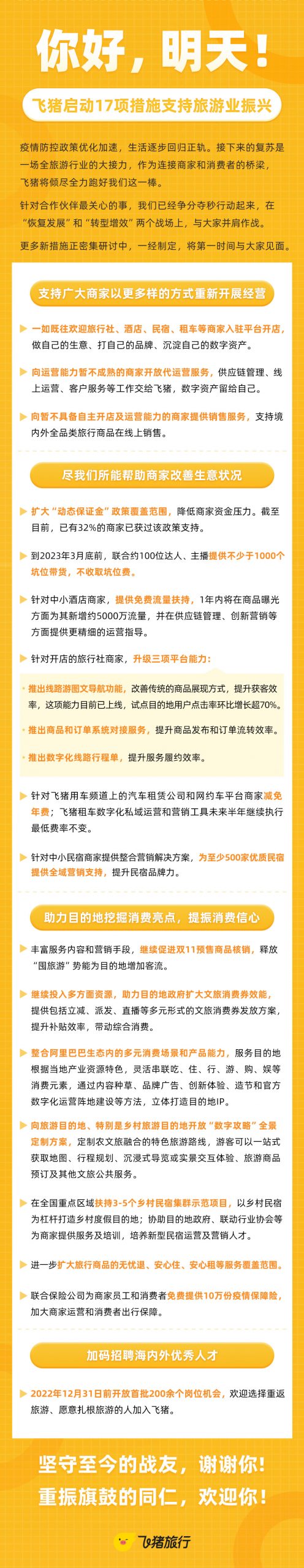 同時(shí),飛豬將進(jìn)一步擴(kuò)大海內(nèi)外人才招聘,在2022年12月31日前開(kāi)放首批200余個(gè)崗位機(jī)會(huì)。