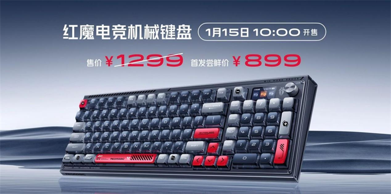 紅魔三模機械鍵盤搭載TTC快銀軸V2,PBT+PC組合鍵帽,擁有極為出色的gasket軟彈手感。2.4G無線延遲低至1ms,同時還有全球首創的可交互屏幕,隨時通過小屏查看電腦狀況。其將于12月29日開售,首發價僅需899元。