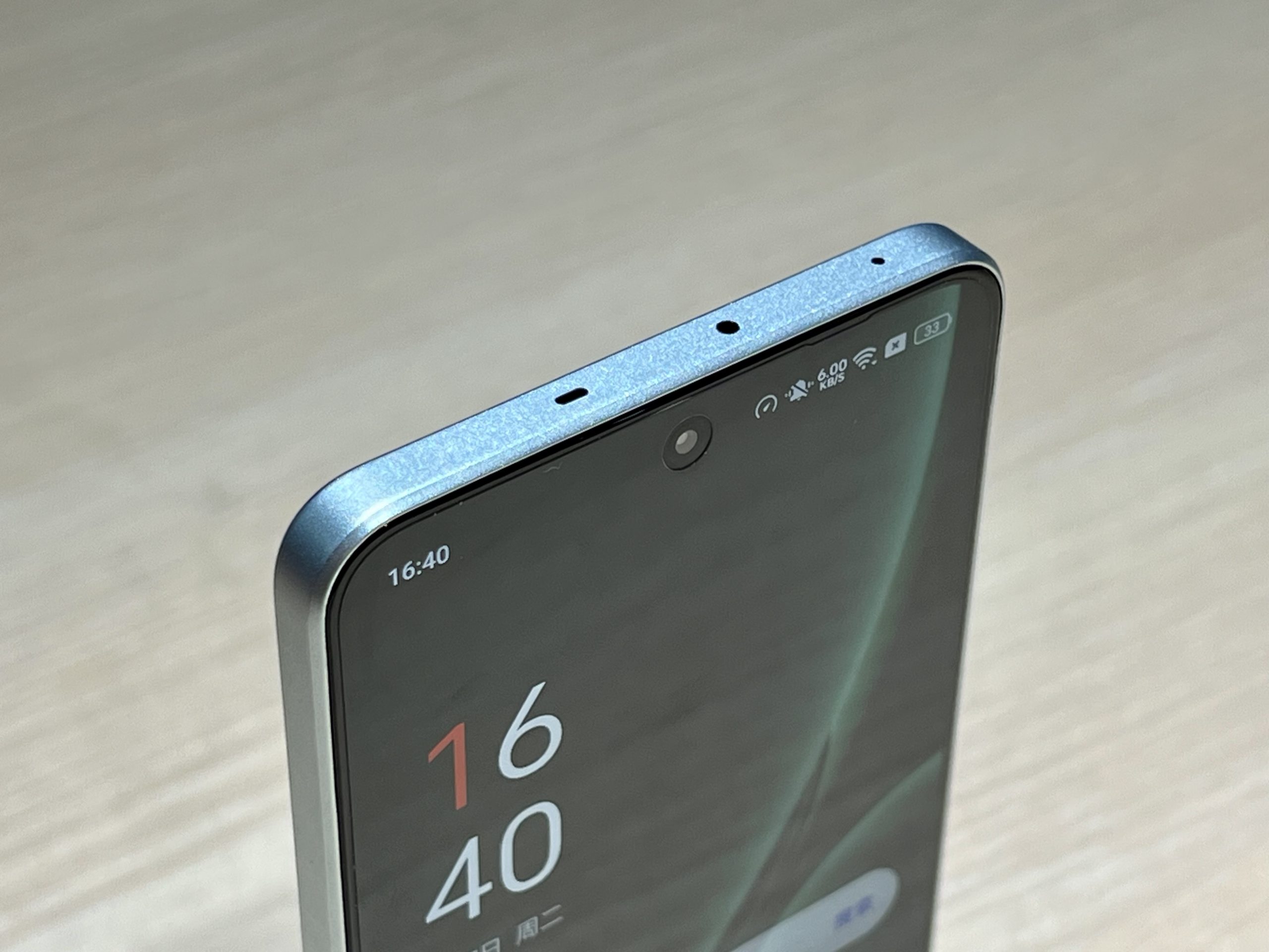 與“自家兄弟”一加Ace 2有所不同的是,一加Ace 2V采用了直屏的設計,雖然無法像曲面屏對于邊框進行收斂,但這塊直屏依舊采用了極窄邊框的設計,不僅視覺上接近四邊等寬,屏幕邊框最窄僅有1.46mm。