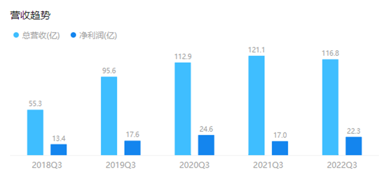 在優(yōu)質(zhì)產(chǎn)品的持續(xù)推動下,三七互娛業(yè)績穩(wěn)步增長。財報顯示,最近五年,三七互娛營收從2018年Q3的55.3億元增長至了2022年Q3的116.8億元,已經(jīng)連續(xù)三年穩(wěn)居百億陣營。