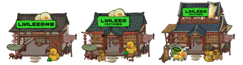 而本次《叫我大掌柜》與LINLEE的聯(lián)動,也正是以【LINLEE小黃鴨】這個獨特可愛的形象作為雙方的錨點。在以清明上河圖為背景的《叫我大掌柜》的游戲世界內,巨型LINLEE小黃鴨出沒在汴梁城中,汴梁河中也迎來了一群同款小鴨子,盡顯童趣;同時,游戲主街里也出現(xiàn)了LINLEE林里茶鋪,在熙熙攘攘的街道上賣起了檸檬茶。