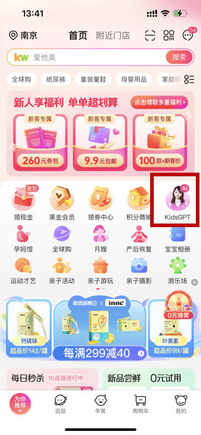 今年年初,孩子王推出了自主研發的AI育兒顧問大模型—KidsGPT。