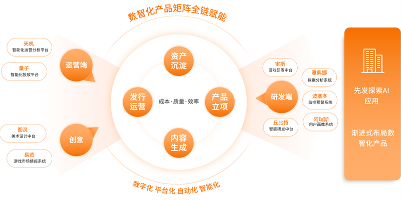 而在發(fā)行線上,早在2018年底,公司便開始搭建了“量子”“天機”等發(fā)行管線的AI工具。發(fā)展至今,三七互娛已完成前期內(nèi)容生產(chǎn)“圖靈”、中期投放“量子”、后端運營“天機”、游戲市場情報系統(tǒng)“易覽”的發(fā)行側(cè)全鏈路數(shù)智化產(chǎn)品部署。