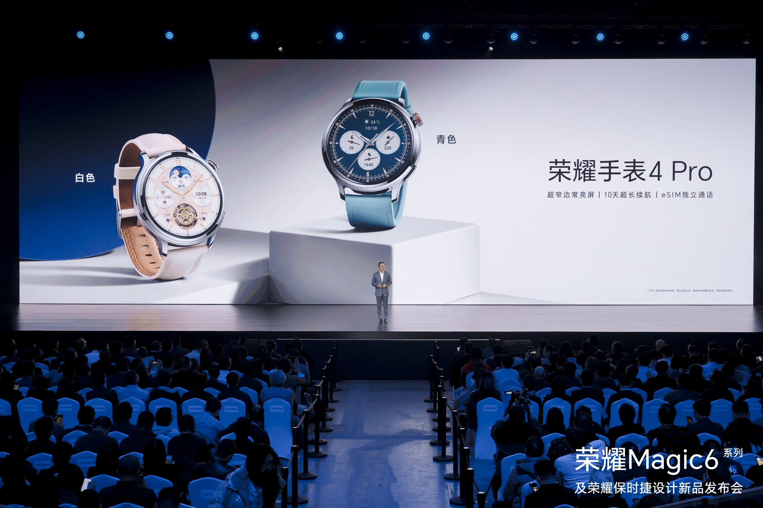 榮耀還為旗艦智能手表榮耀手表4 Pro,推出白色和青色兩個全新的款式,分別搭配白色皮表帶和藍色氟橡膠表帶,以及全新的表盤設計。榮耀手表4 Pro致敬經典機械手表的精湛工藝和設計,展現出無可挑剔的獨特美感;集成“一主二協”三顆處理芯片帶來典型模式10天超長續航;還支持eSIM和一表雙待等強大的獨立通信能力。全新配色的榮耀手表4 Pro售價依然1599元起,即日起開啟預售,2024年1月11日20:30正式開售。