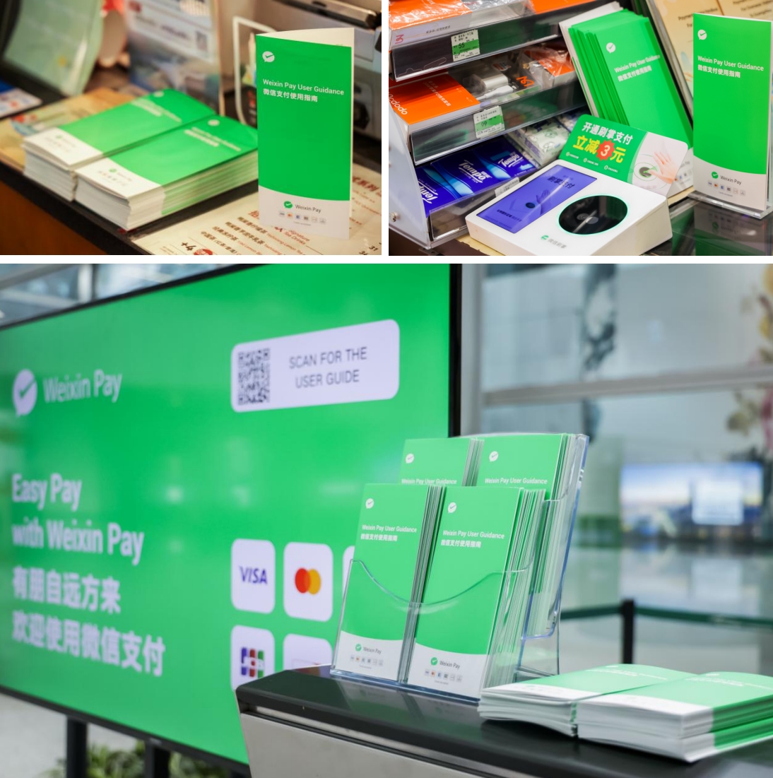 此次,在中國人民銀行廣東省分行、中共廣州市委金融委員會辦公室、廣州市商務局的支持與指導下,微信支付積極助力廣州提供廣交會服務。在服務臺,入境客商將獲取到開通微信支付、綁定外卡、支付消費等一系列操作指引,同時,也可了解通過微信就能“一條龍”打車、乘坐地鐵、掃碼點餐、景區游玩、購物等“暢享廣府味”指引。廣交會期間,微信支付還將在廣交會展館、地鐵、公交、出租車、酒店、主要商圈等地提供指引手冊。