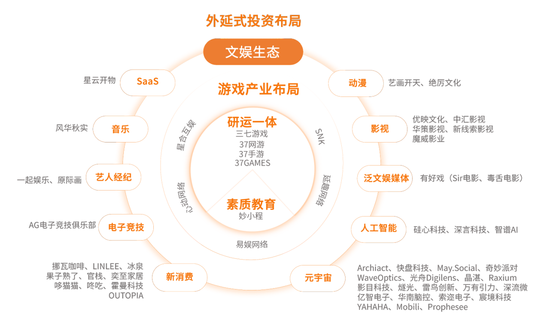 作為以前瞻性視野實現高質量發展的企業,三七互娛在2015年就開始布局CVC,從游戲主業向全產業鏈生態圈內元宇宙、人工智能、影視、音樂、動漫、泛文娛媒體、新消費等進行外延式投資,構建多元化的內容生產以及展示平臺。近年來,三七互娛憑借著對元宇宙、AI等數字技術在游戲行業率先落地的敏感度以及探索經驗,圍繞AI基礎設施(芯片算力、Infra)、交互傳感、AIGC應用、具生智能、XR以及游戲基礎設施等領域布局,以投資賦能業務協同發展,構筑產業競爭新優勢。