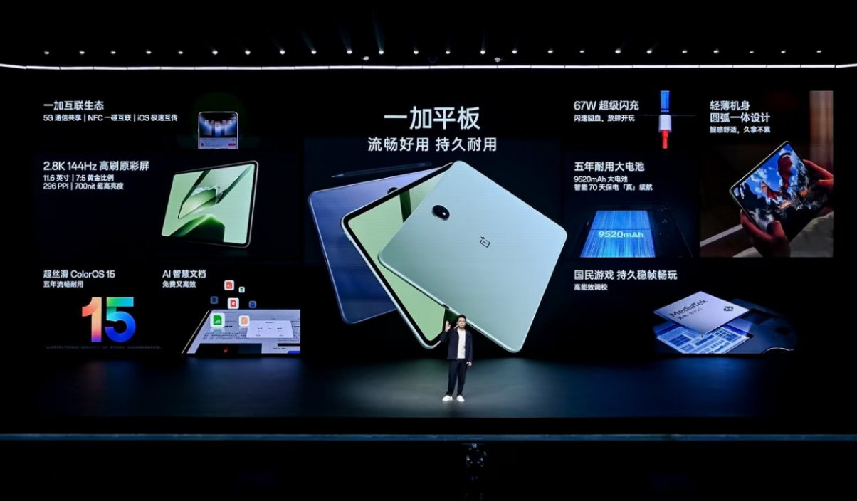 一加平板提供苔原綠、深空灰兩種配色,搭載天璣 8350 旗艦芯片,擁有至高 16GB+512GB 存儲組合。一加平板搭載 11.6 英寸 2.8K 144Hz 黃金比例高刷原彩屏,不僅顯示清晰,還兼具舒適的握持感;一加平板支持 67W 超級閃充,且擁有 9520mAh 耐用大電池,還支持智能 70 天保電,持久耐用。一加平板搭載 ColorOS 15 系統(tǒng),不僅流暢易用,還擁有系統(tǒng)級 AI 能力,支持一鍵問屏、AI 智慧文檔、AI 語音摘要等功能,無論是學(xué)習(xí)還是辦公都能更加高效便捷。此外,一加平板還支持通信共享、一碰互聯(lián)、文件隨心開等功能,既能暢玩游戲,也能高效學(xué)習(xí),是當(dāng)代大學(xué)生的首選平板。