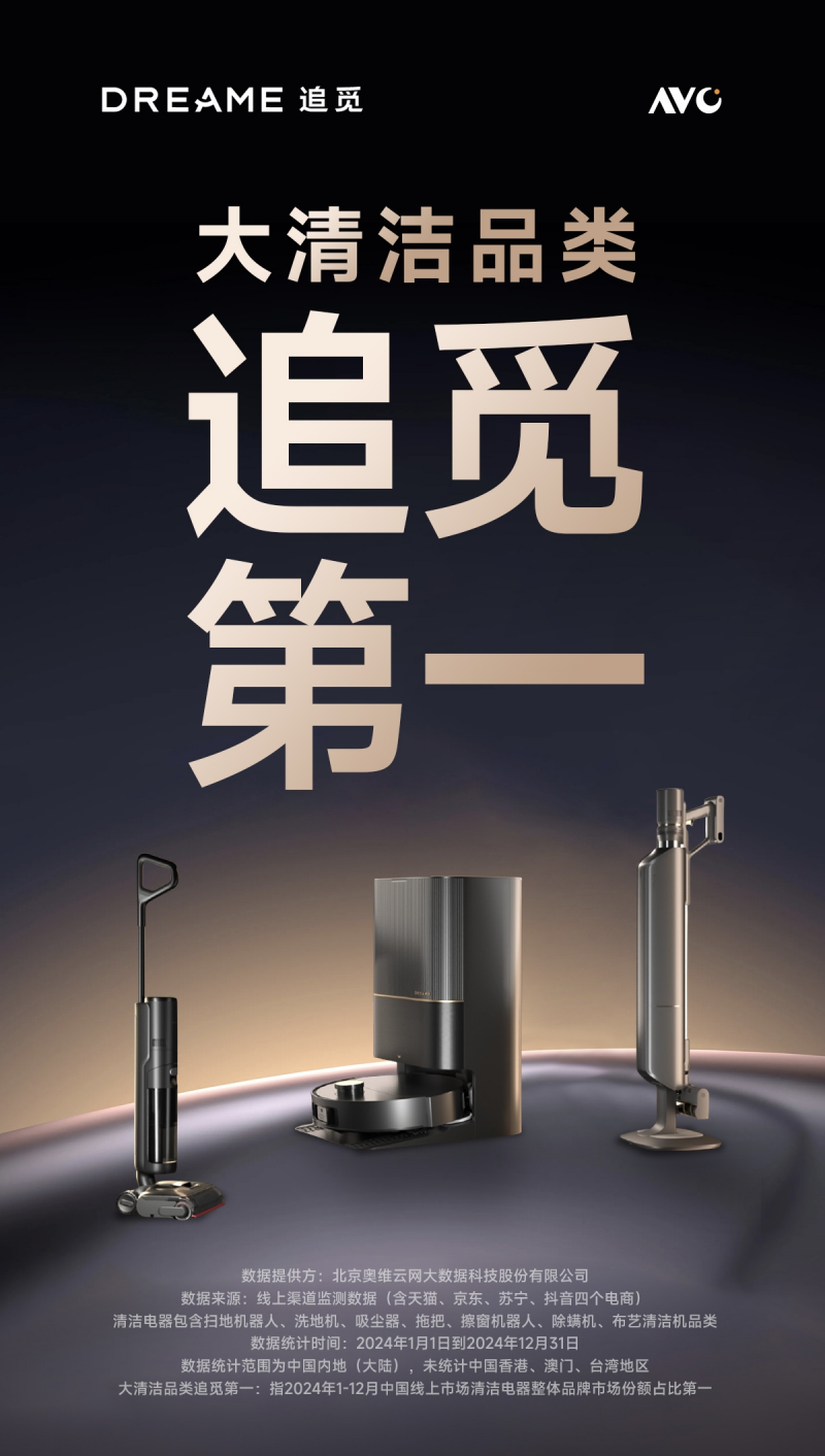 近日,追覓科技正式對外宣布,在2024年中國清潔電器市場的激烈角逐中,追覓科技成功登頂,成為大清潔品類市場第一。