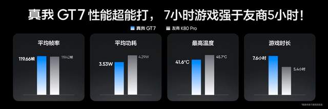 為充分發(fā)揮3nm旗艦芯的潛能,真我GT7升級全新GT性能引擎2.0,首發(fā)芯片級內(nèi)核技術(shù),每幀畫面渲染負(fù)載至高降低30%,有效提升游戲能效與溫控表現(xiàn)。《王者榮耀》120fps+極致畫質(zhì),滿電玩到關(guān)機超過7個小時,幀率、能效、溫控均比其它3nm性能旗艦5小時的表現(xiàn)更出色。