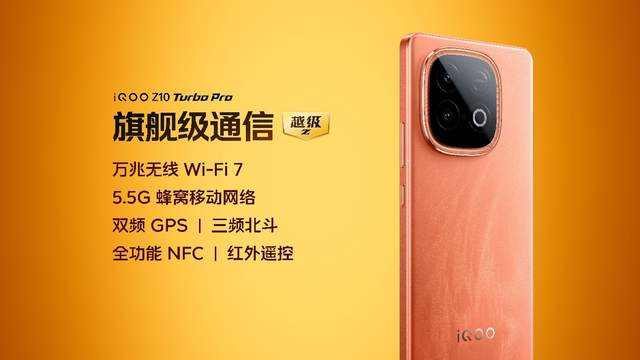 iQOO Z10 Turbo Pro 采用旗艦同款寰宇電競信號系統,以 24 根環繞式天線帶來“橫握豎握隨便握,信號始終都很穩”的表現,并聯合《王者榮耀》首發“雙網融合加速”,開啟后游戲延遲最高改善達 70%。此外,Z10 Turbo Pro 還支持 Wi-Fi 7、5.5G、雙頻 GPS、全功能 NFC、紅外遙控以及支持厘米級精準定位的藍牙 6.0,通信能力亦是旗艦級。