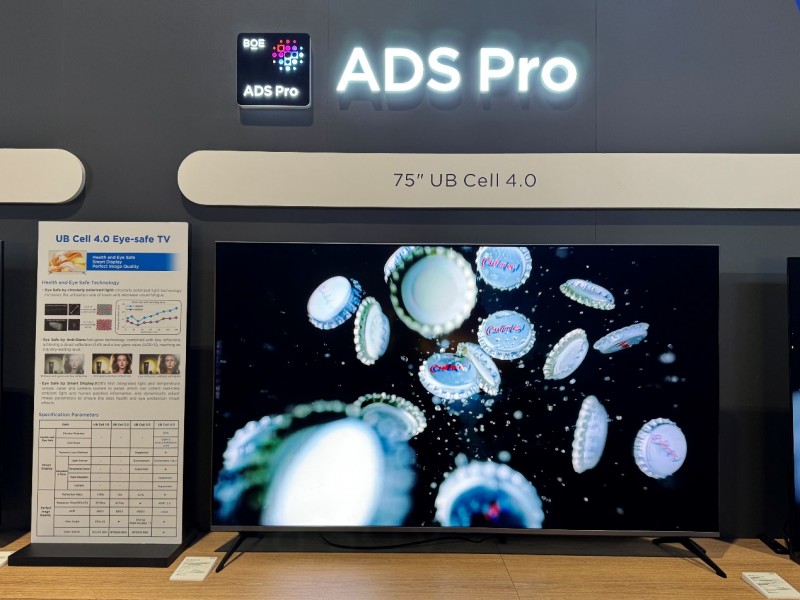 本次展會,BOE(京東方)攜三大技術(shù)品牌重磅首發(fā)的多款行業(yè)領(lǐng)先顯示技術(shù)和產(chǎn)品驚艷亮相。步入ADS Pro展區(qū),首先映入眼簾的是BOE(京東方)全球首發(fā)的75英寸4K UB Cell 4.0電視,可實現(xiàn)超高色域以及全視角無色偏,搭配1400:1的超高環(huán)境光對比度和0.7%的超低面板反射率,帶來媲美OLED的極致畫質(zhì);同時,集成光感、溫感、靈動、雷達、攝像頭等智慧顯示功能,實現(xiàn)不同場景下畫質(zhì)最優(yōu)化。