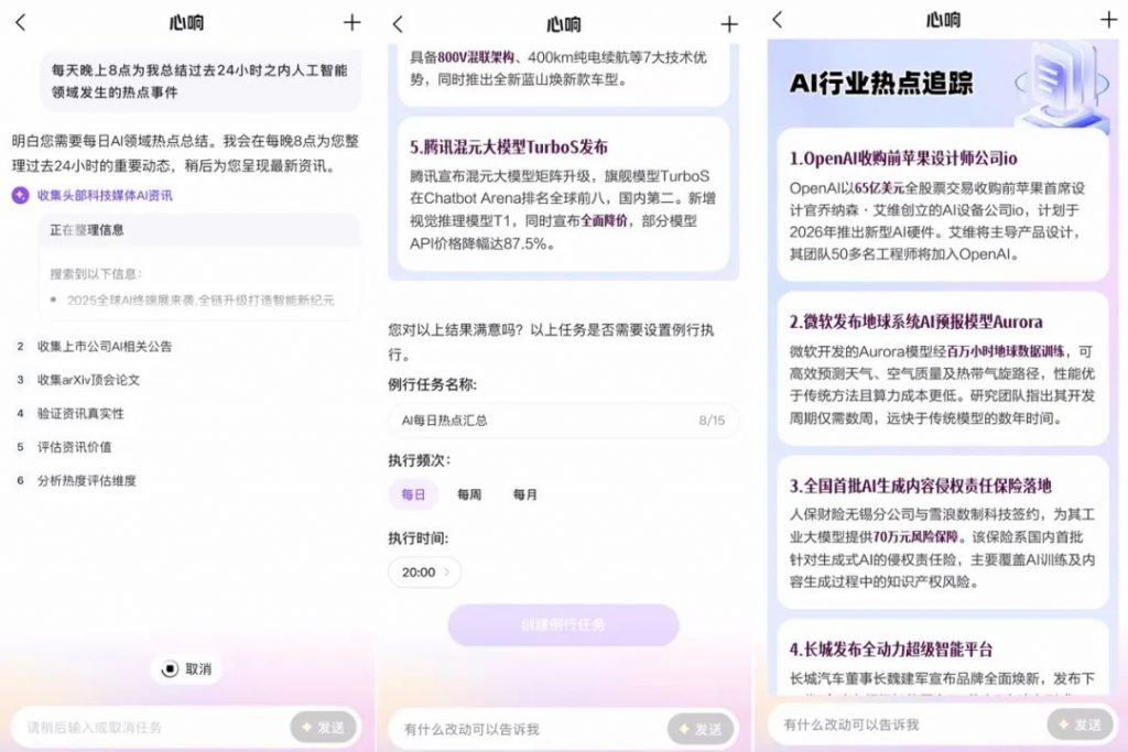 日常信息的例行處理,對于媒體而言,是一個非常剛需的場景,心響可以通過創建“例行任務”,周期性地實現某些特定功能。
