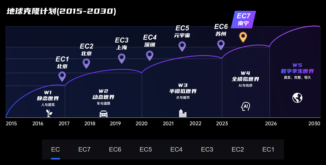 51WORLD的“地球克隆計劃”是公司的核心戰略之一,目標是在2030年完成第五階段,以用于解決真實世界中關于交通擁堵、AI訓練、時空沉浸、安全預警、氣候預測、能源工業等應用領域的各種現實問題。