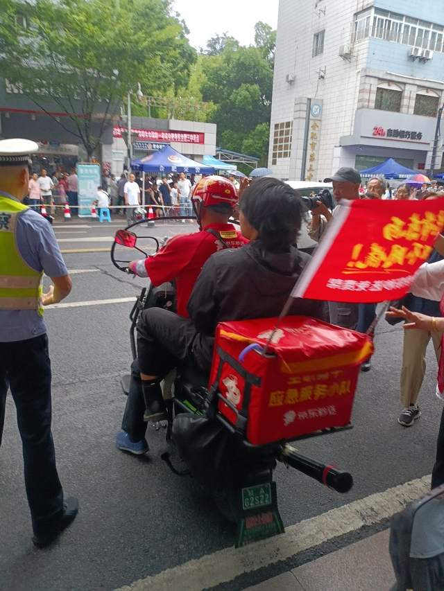 高考期間,京東外賣在全國近50城數百個考點組建全職騎手助考應急小隊,為送考途中忘帶證件、文具,或因交通原因影響應試的考生和家長,在確保配送安全的前提下,免費提供幫助。