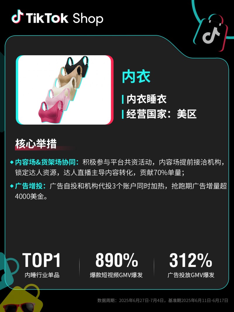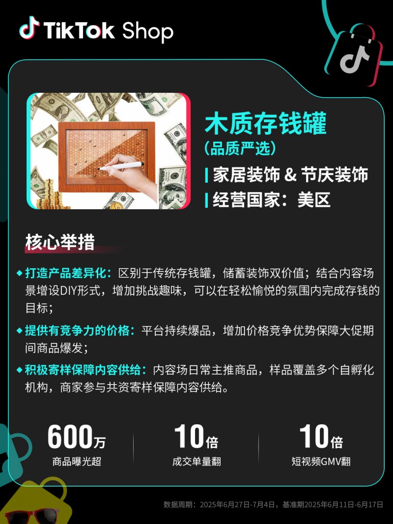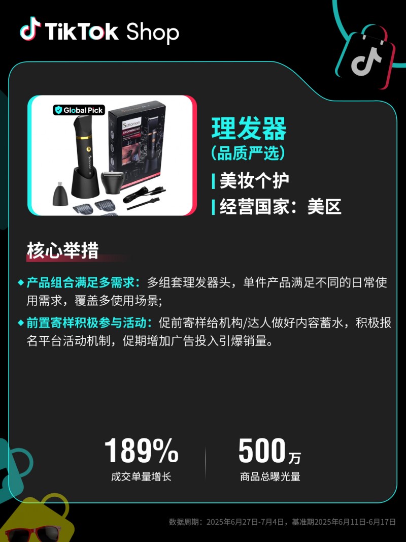 TikTok Shop美國年中促迎來開門紅,全托管業務GMV同比增長149%,重點趨勢品、爆品GMV爆發181%。服飾商家可把握本土流行趨勢快速開發新品,綜合類商家建議深挖用戶生活需求優化貨盤。此外,還需注重優質內容儲備與精準廣告投放以驅動生意爆發。