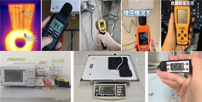 “答主評審團”結合真實家庭場景,設計單人沐浴、多點用水、長管路測試等極端場景,采用專業設備(如多通道測溫儀、聲級計、燃氣表)歷時兩周持續記錄數據。為了避免主觀感受干擾、確保數據可復現,本次多位答主在正式開測前,都在家中進行了實裝。并且搭建了自己的測試體系——從溫度曲線、流量精度,到燃氣消耗與噪音監測,形成了一套覆蓋熱工、流體與聲學的完整測試框架。