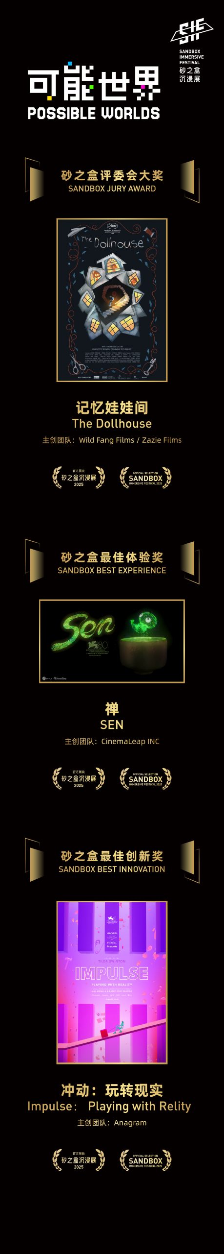 在今天的「砂之盒頒獎禮」環節,2025砂之盒沉浸展的競賽單元評選結果最終揭曉!