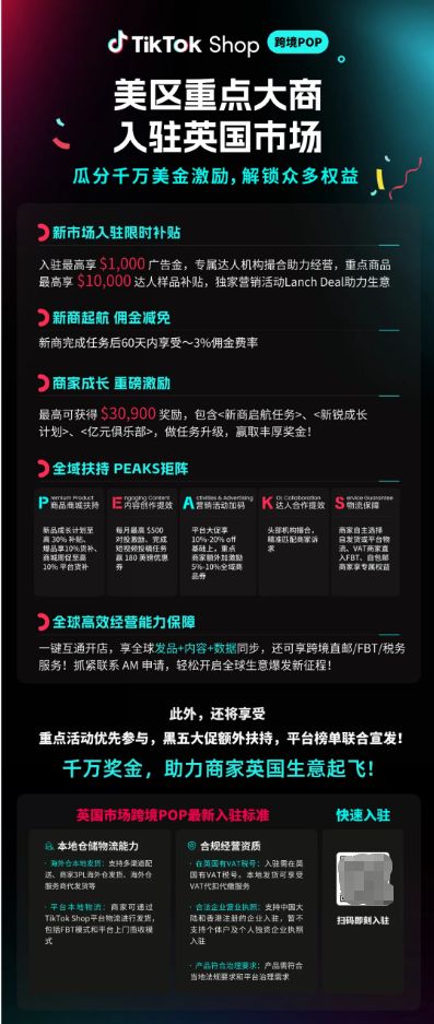 針對美區(qū)重點(diǎn)商家開通英國站點(diǎn):平臺還額外提供千萬獎金激勵,商家最高可獲得超3萬美金激勵,最高享1000美金廣告金補(bǔ)貼,重點(diǎn)商品最高享1萬美金樣品補(bǔ)貼。