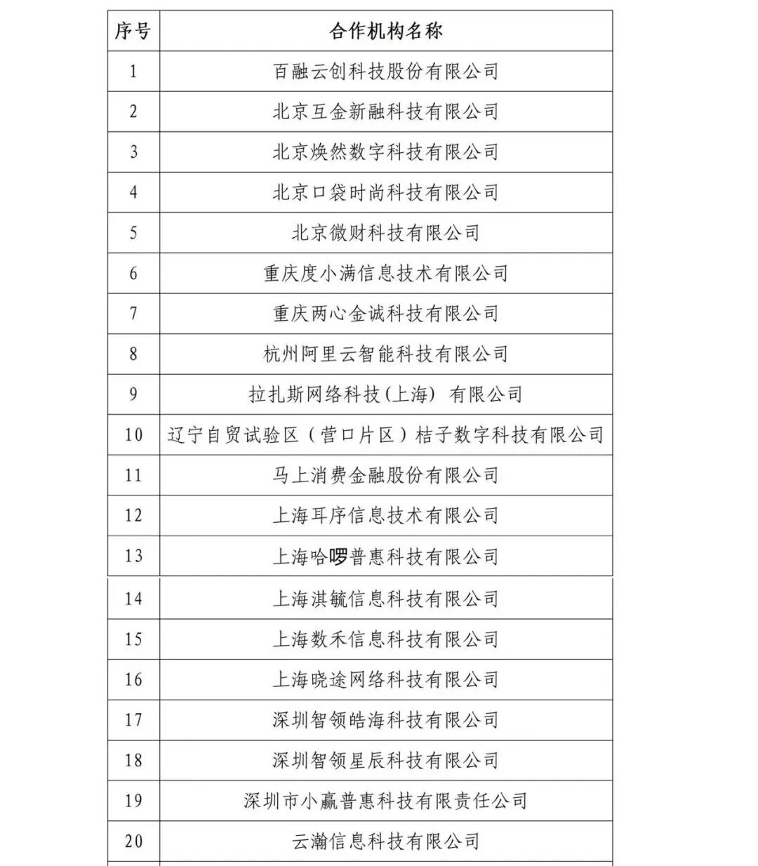 9月30日,哈銀消費金融公布了68家合作機構名單,包含約20家平臺運營機構(助貸機構)。從助貸合作方構成看,涵蓋互聯網大廠系與頭部助貸平臺,例如美團系的重慶兩心金誠科技、攜程系的重慶金程信息科技、杭州阿里云智能科技、上海哈啰普惠科技等,以及小贏科技、桔子數科、微財科技、數禾科技、百融云創等頭部助貸平臺關聯公司均在列。