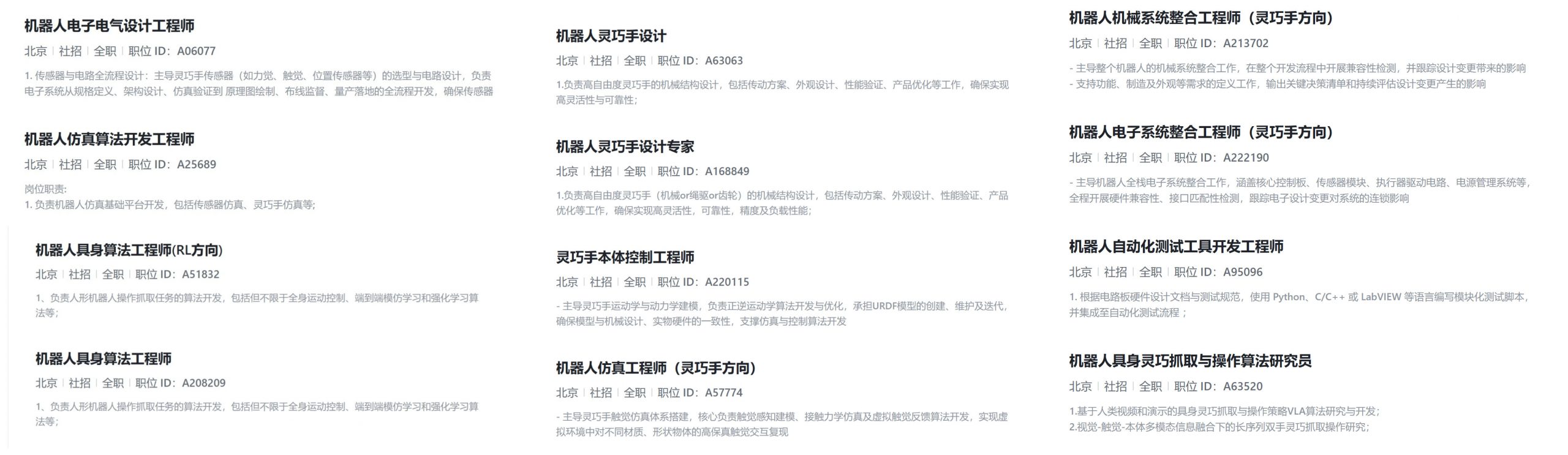 與此同時,小米機器人團隊正在擴張,與“機器人”相關的在招職位數(shù)量達257個,與“靈巧手”相關的在招職位達12個,包含機器人靈巧手設計、機器人仿真工程師、機器人具身靈巧抓取與操作算法研究員等。對于“靈巧手”相關工作的要求,盧澤宇在社交網(wǎng)絡上回復稱,在招機械,電子,本體控制,仿真,系統(tǒng)整合等。