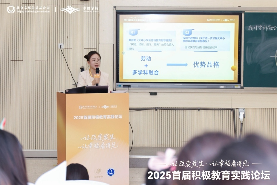 深圳厚德小學張明雪、李雨維老師分享了如何在勞動和閱讀中培養優勢品格;寧波赫德學校曾凡菊副校長講述了“看見成長的力量”的校園實踐;重慶梁平區曹崇麗老師展示了跨學科課堂的幸福創新。